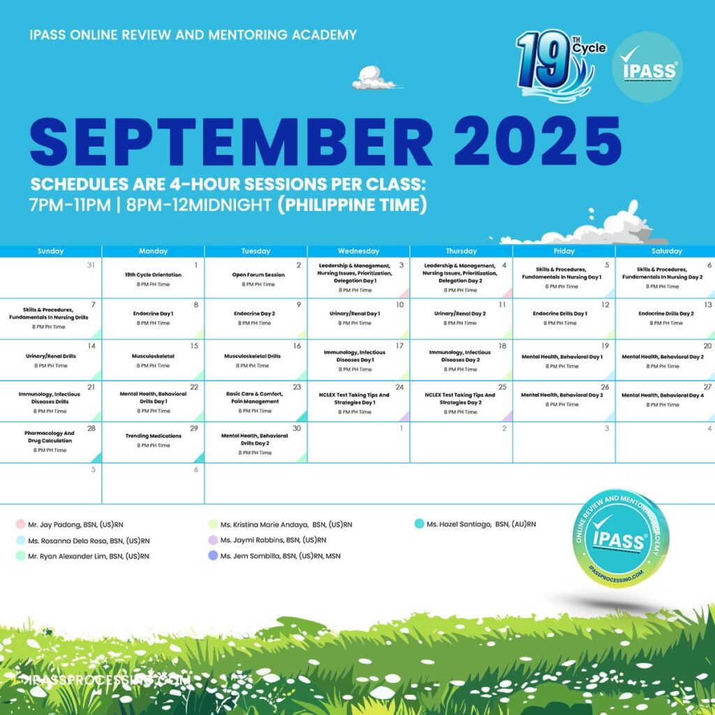 At IPASS, we’re committed to walking with you every step of the way. Each month of your NCLEX review is carefully planned to ensure you build knowledge, strengthen clinical judgment, and gain the confidence to succeed on exam day. Let’s make this 20th Cycle your strongest yet!