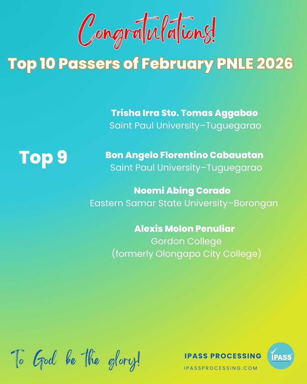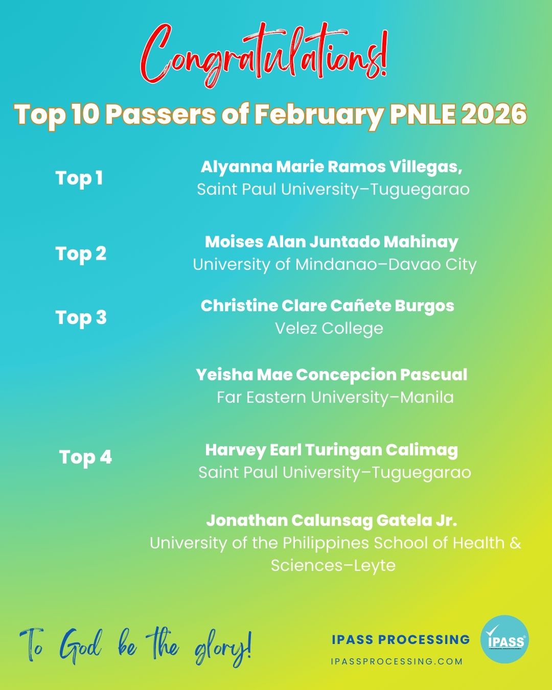Top Performing Individuals for the February 2026 PNLE