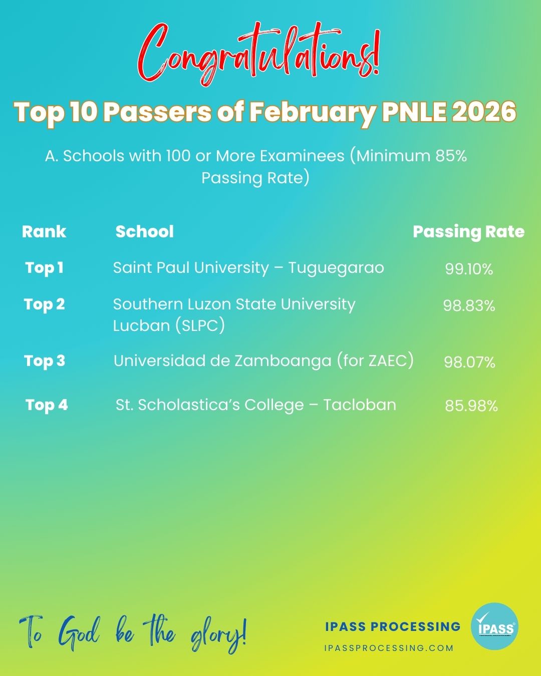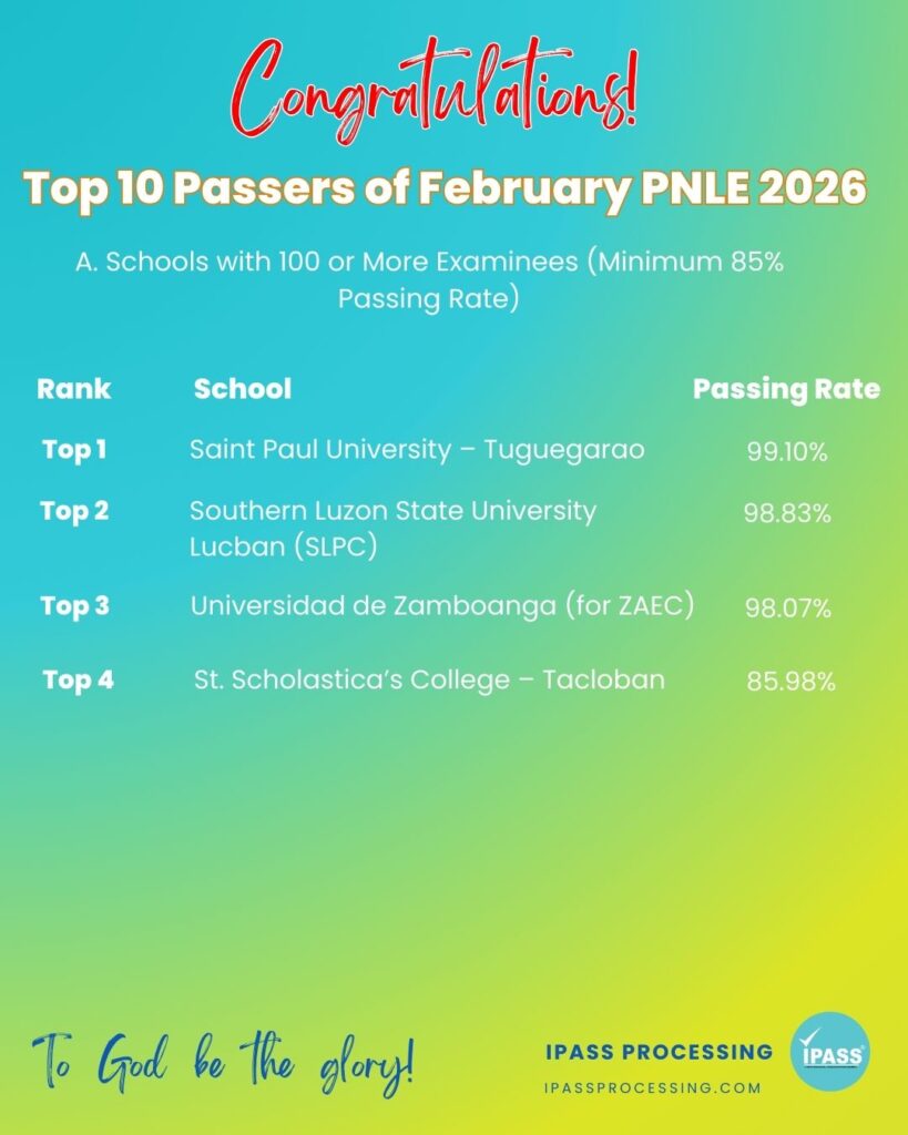 Schools with the Highest Passing Rates for the February 2026 PNLE