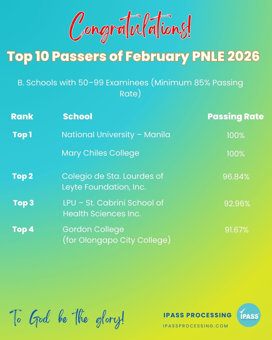 As we recognize the outstanding performers and top nursing schools in the February 2026 PNLE Results: Top Schools and Topnotchers, let us also celebrate all the new nurses who passed the exam. You are the future of Philippine healthcare, and today is a proud moment for you, your families, and your schools. Congratulations, Registered Nurses! Your journey in caring for others starts today.