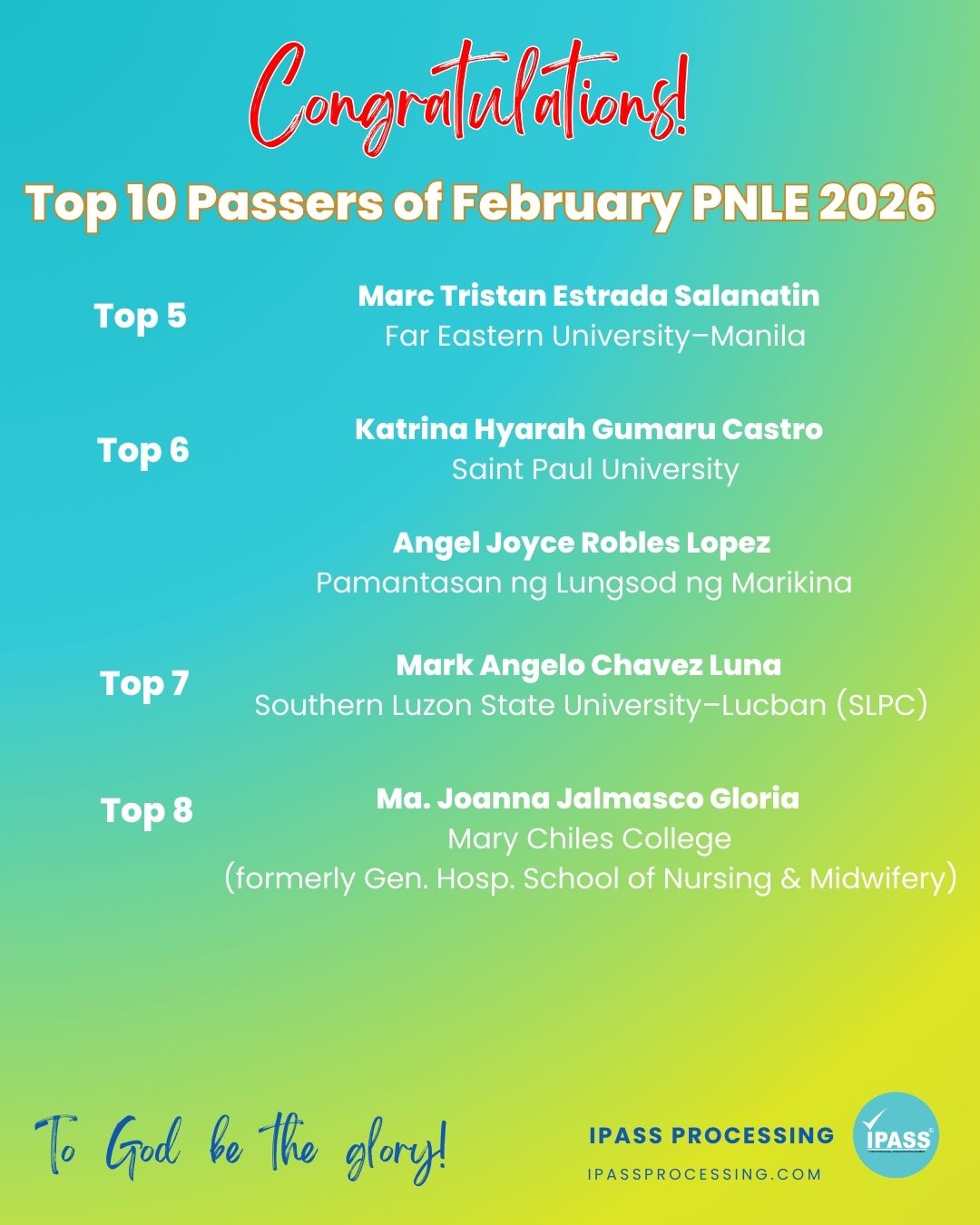 To those who passed the February 2026 PNLE, congratulations on this important milestone. Your hard work and determination have brought you to this moment. With God’s guidance and your commitment to serve, you are now ready to begin a new chapter as a Registered Nurse. May you continue to care for others with kindness, humility, and dedication wherever your nursing journey leads you.